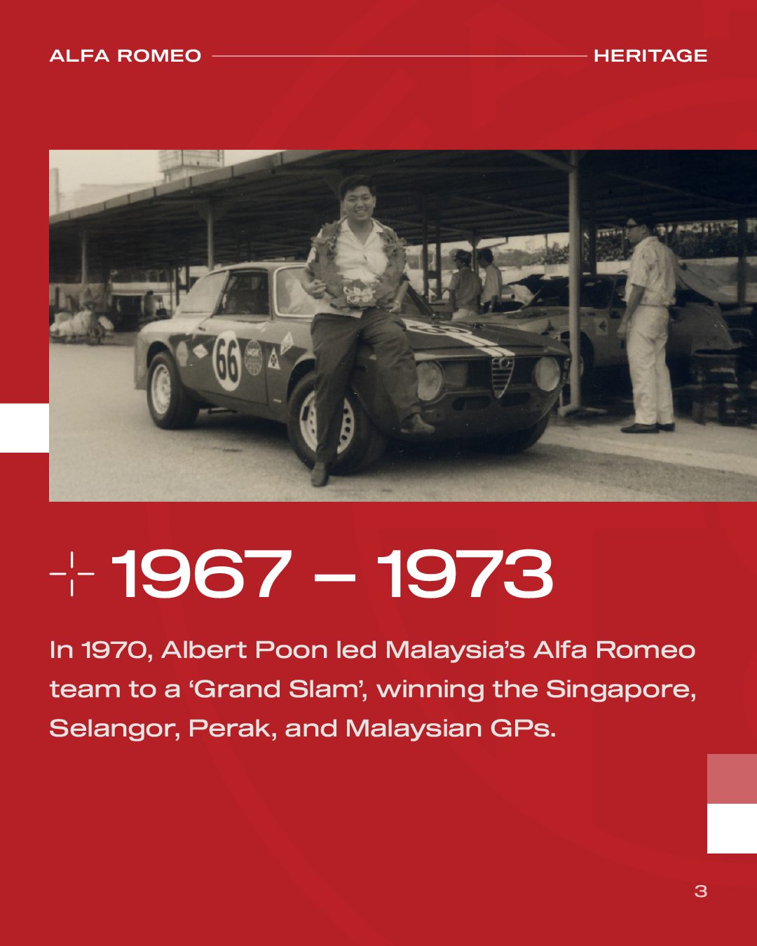 Malaysians have long had an especially emotive relationship with this iconic brand born in Milan 115 years ago, innately understanding that they embody more than just simple transportation; imbuing us with emotional sensations and powerful memories unequaled by any other marque. Alfa Romeo first entered our market with City Motors in 1965, before rapidly thrilling homegrown fans with the sort of competitive excellence already proven by multiple Grand Prix & Touring world championship titles. Indeed just 5 years later in 1970, none other than former Hong Kong police inspector Albert Poon led Malaysia’s Alfa Romeo team to a celebrated ‘Grand Slam’ by winning the Singapore, Selangor, Perak and Malaysian Grands Prix.