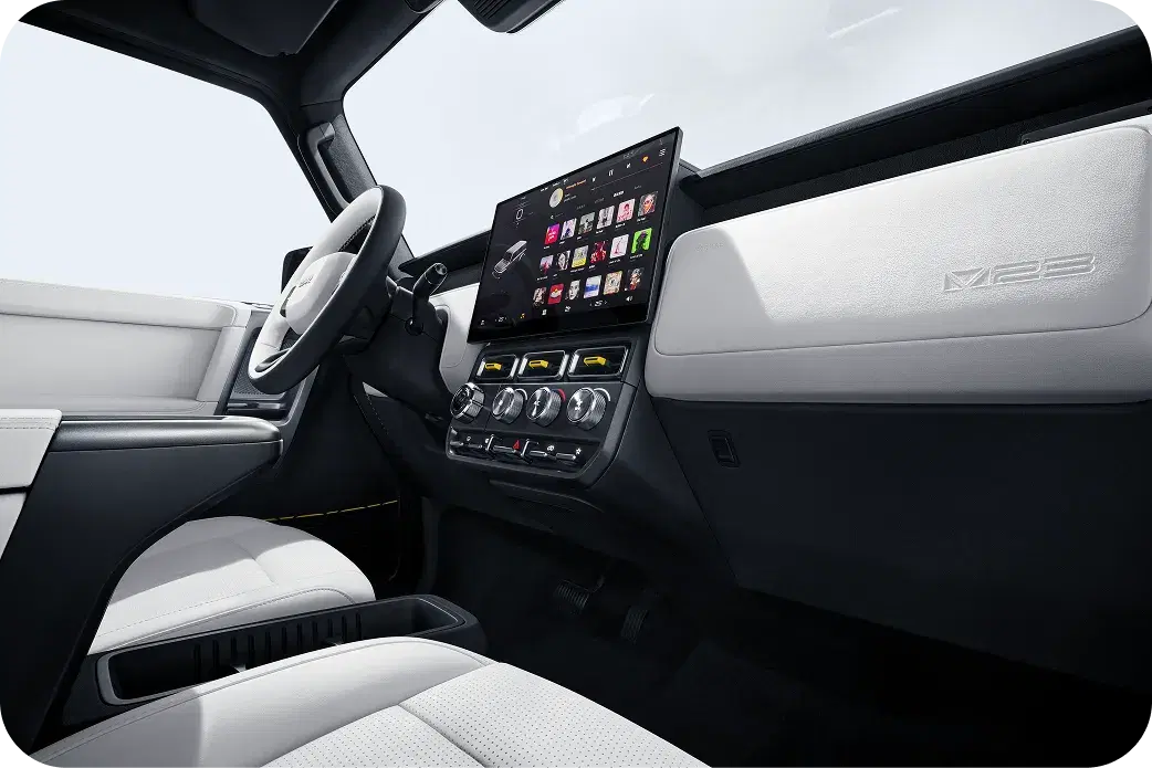Underpinning all this is the V23’s structurally robust, cage-like frame made from 70% high-strength steel. There’s also a Battery Management System (BMS) providing both high voltage protection and precise liquid cooled temperature protection to ensure overall battery safety; taken as a whole, they reassuringly protect the V23 & its occupants in both everyday usage and more challenging conditions. A comprehensive safety suite is also on hand, including six airbags & ADAS Level 2 advanced driver assistance systems supported by a vehicle body-integrated millimetre-wave radar with high detection accuracy in various environments.