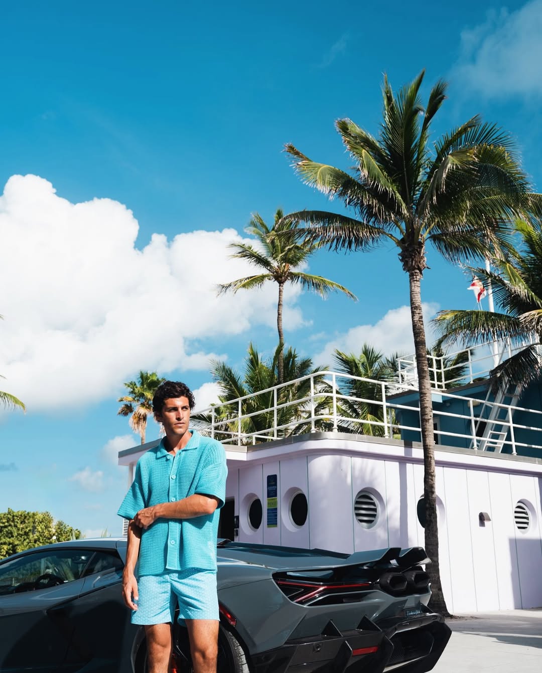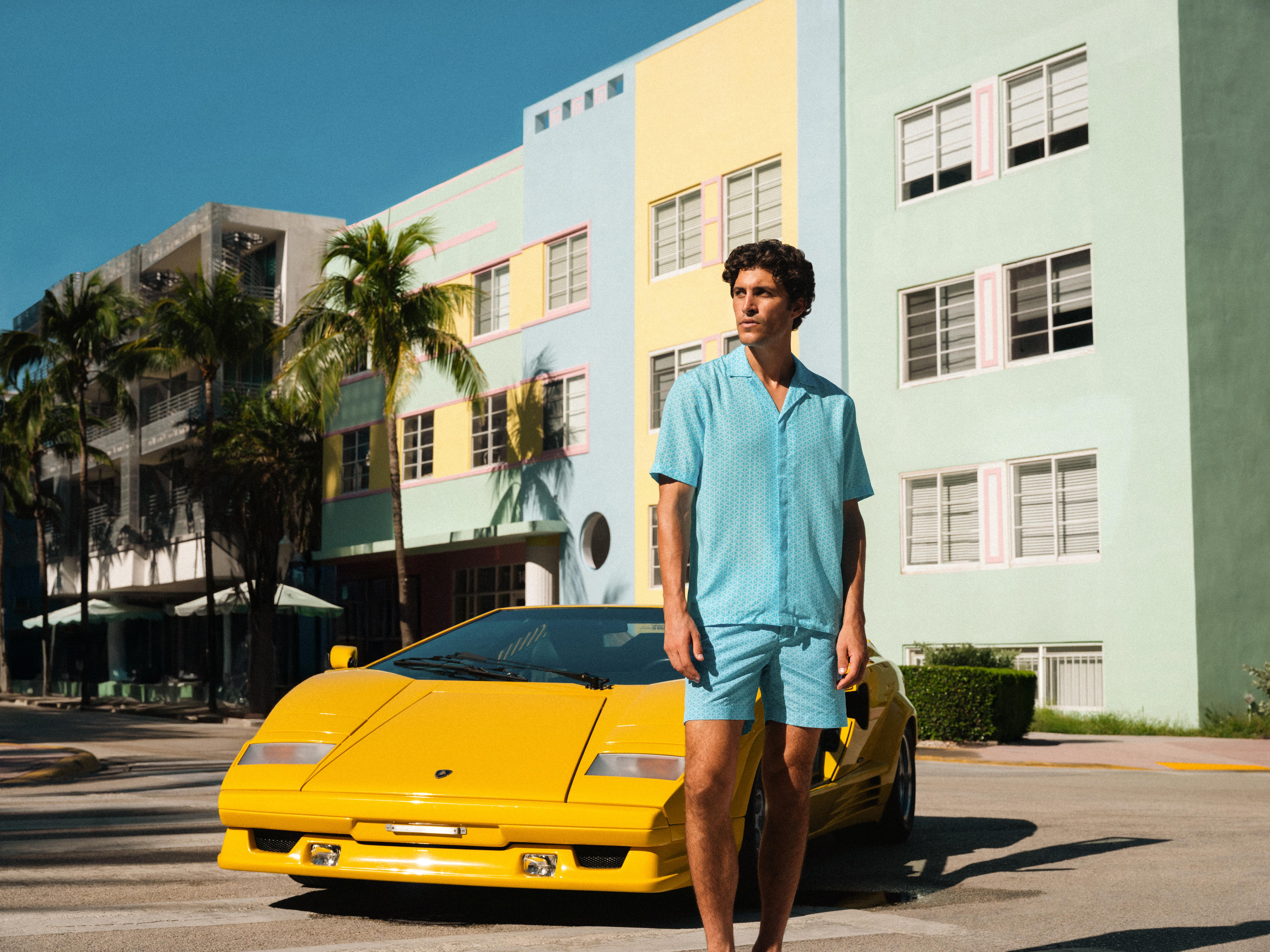 Their colour palette looks to have been lifted straight from the most eye-popping unique shades with which Lamborghinis likely dazzled the real life South Beach in a mesmerizing sea of artsy eye-candy during those eras too, spiced up with Miami’s lively, electrifying energy; from Blu Cepheus & Verde Selvans to the more classically balanced tones of Blu Okeanus and Bianco across the collection.