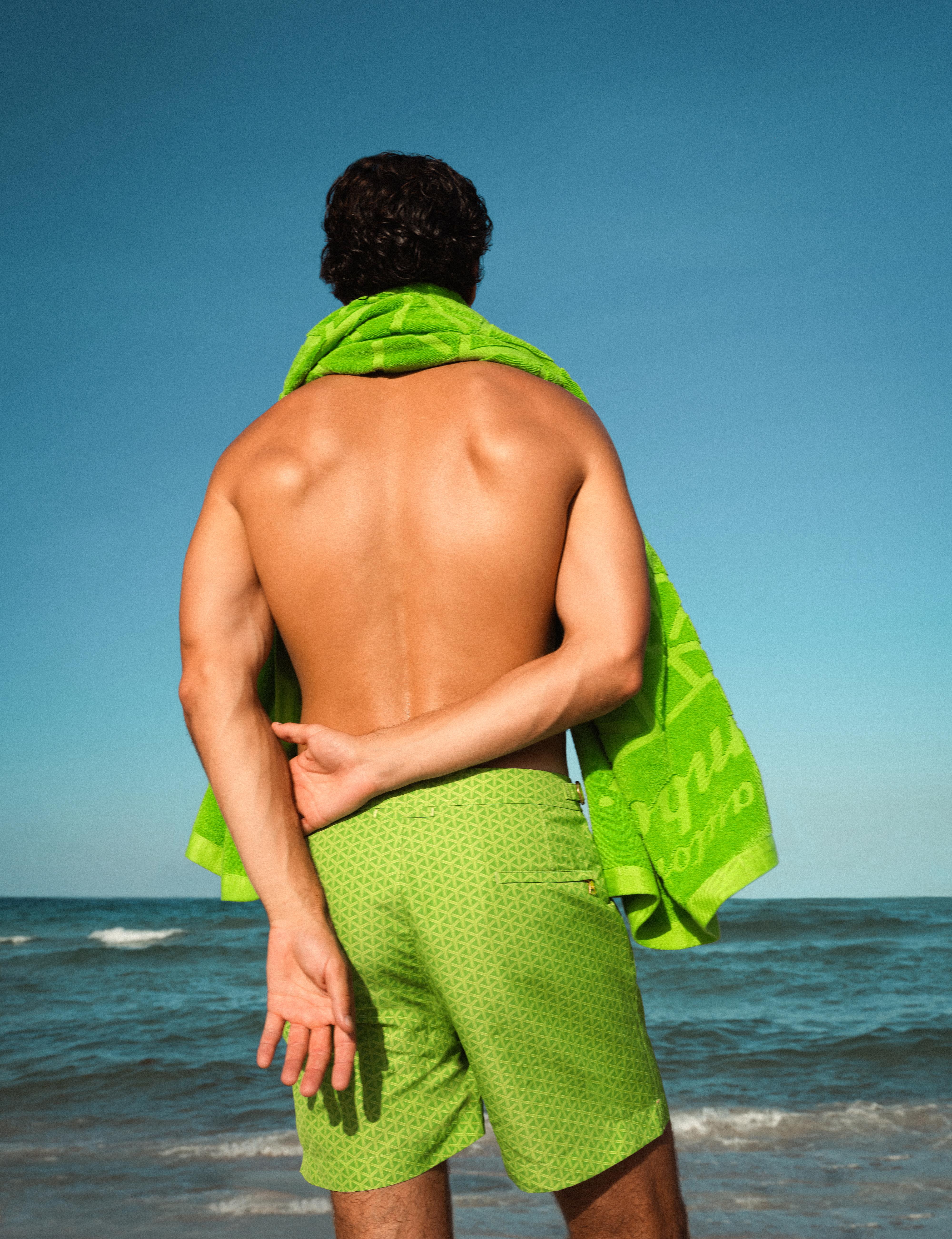Indeed those who like their beachwear to look as good as their four-wheeled Raging Bulls will do well to consider adding the collection’s silk resort shirts, bright blue or green swim shorts with signature hexagonal prints, rashguards, and newly designed beach bags with matching towels to their personal wardrobes.