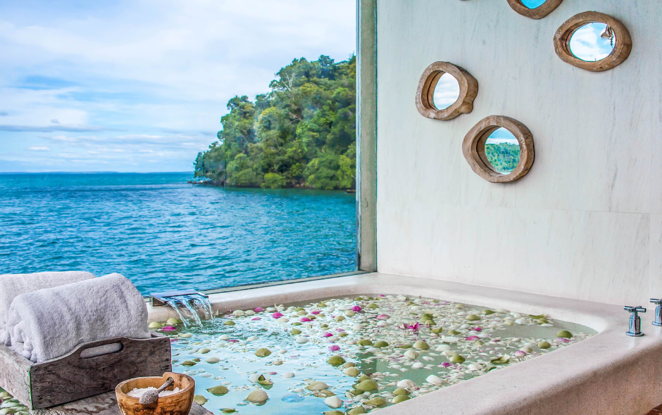 Make your way over to Cambodia, and you’ll find the Song Saa Private Island — standing proud as a monument to “barefoot luxury.” This lush sanctuary is made up of two small, interconnected islands within the pristine Koh Rong archipelago. The resort’s ethos combines both indulgence and unwavering sustainability, which gives it that barefoot luxury charm. It’s a place where you can feel the soft sand between your toes while knowing you’re contributing to a greater cause.