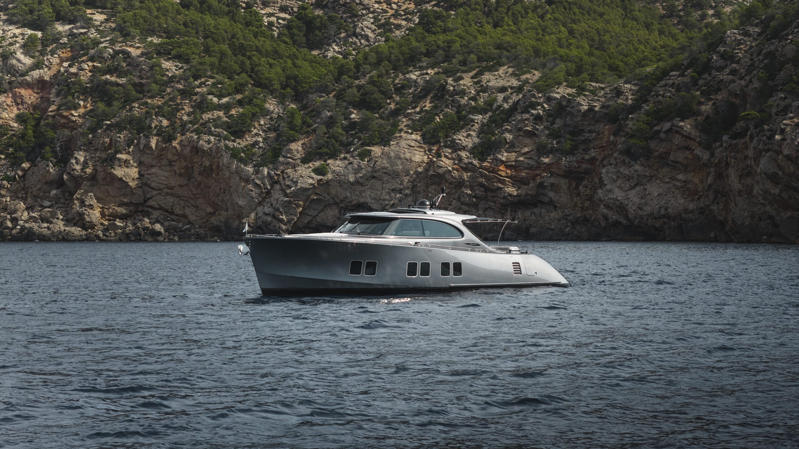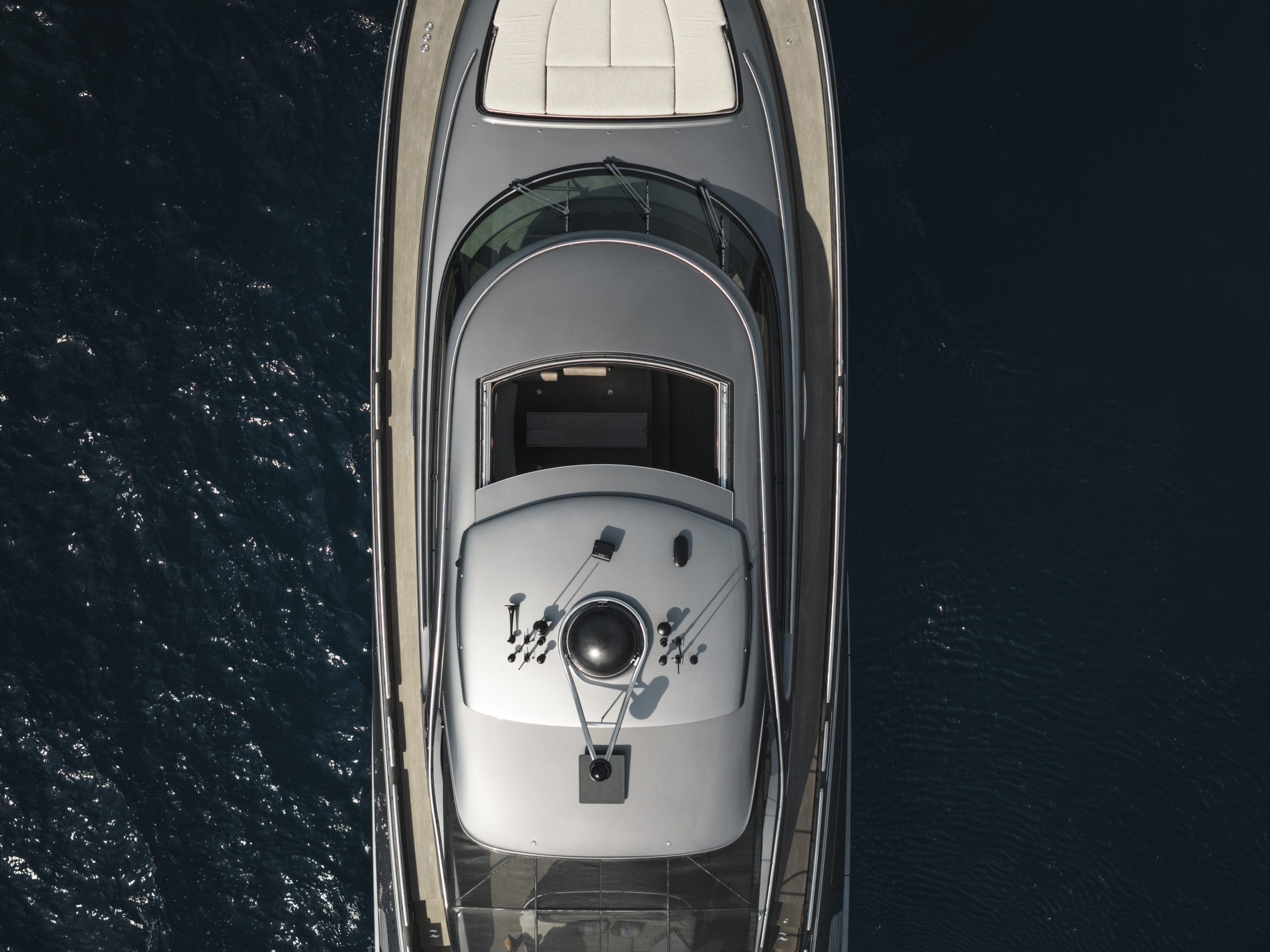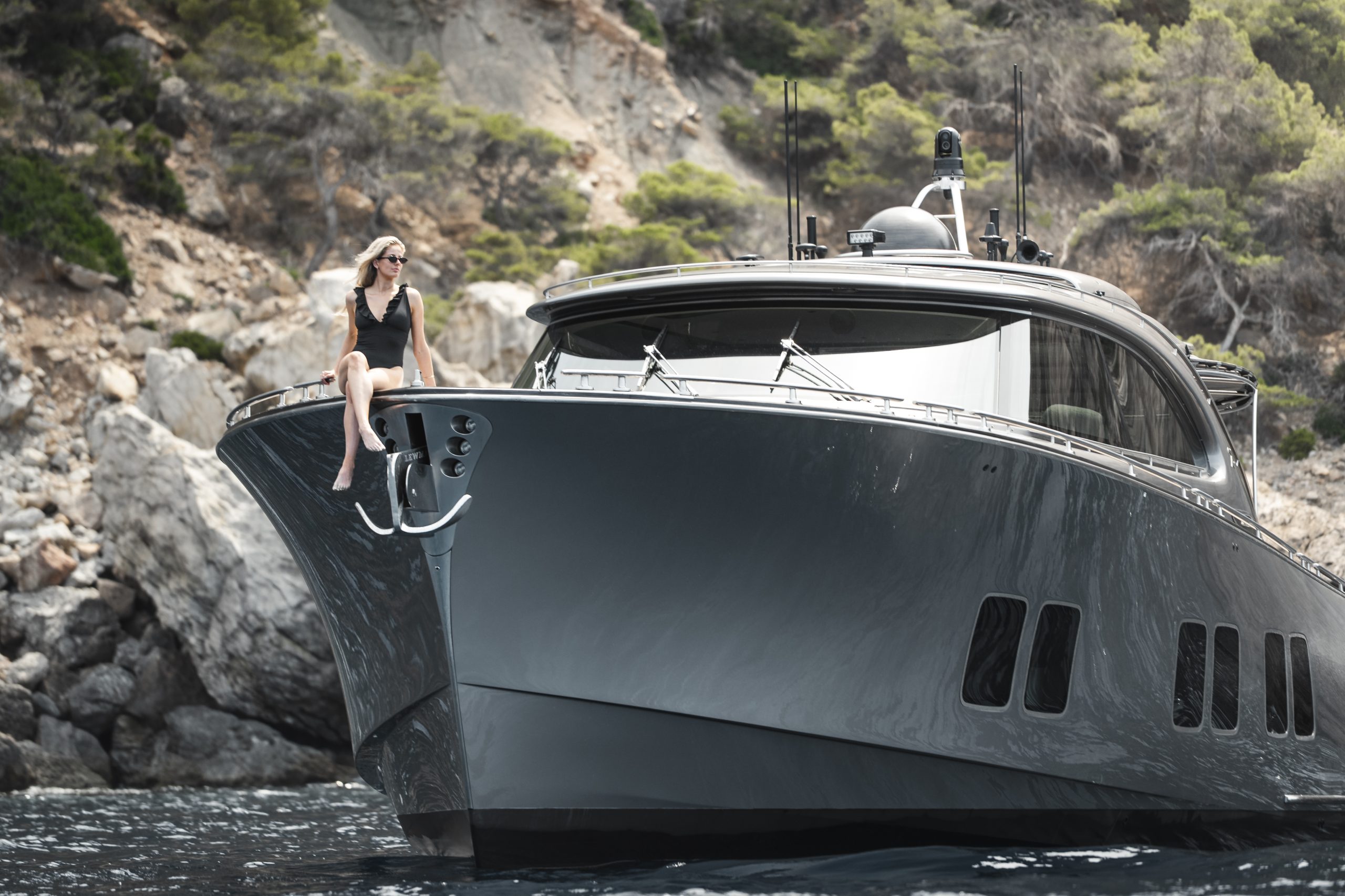 Loloma’s sculptural grace and flowingly curved aesthetics make for a truly head-turning vessel on the water. A tall, flared bow gradually gives way to the deeply raked transom via a lengthy S-shaped shearline, while a single strip of three-dimensionally sculpted glass dominates her deckhouse’s low profile. Contrasting the signature dark blue hull & white superstructure look often favoured by Zeelander’s other clients, Loloma’s monotone silver-grey hull is another stand-out feature; along with her lack of a waterline that was another of the owner’s intentional choices to enhance Loloma’s connection with her natural environment.