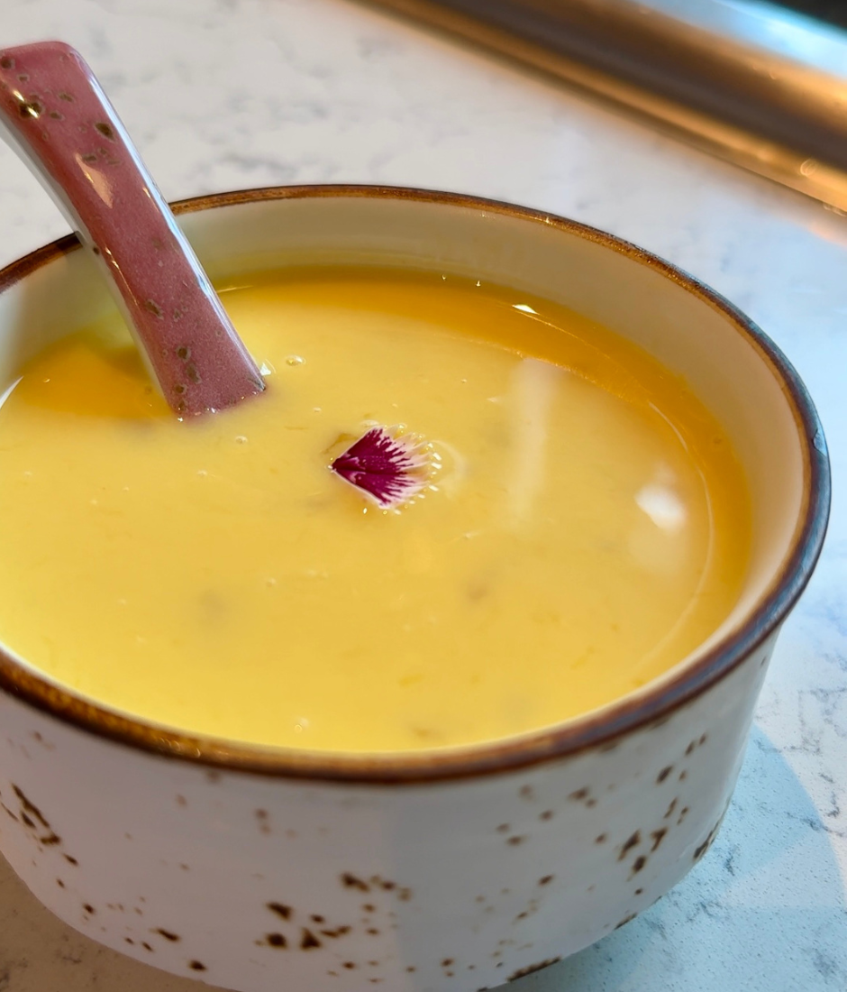 But let’s talk about the true star of the show: the seasonal Hairy Crab. Don’t let its size fool you — it’s utterly packed with flavour and texture. If you find cracking it open too tricky, no worries! The staff is trained to expertly dismantle and even plate the crab for you beautifully. While the sweet meat is great, the real treasure is the roe, which hits you with this incredible creamy, savoury richness. Paired with this crab is a delicate cup of ginger tea. Following Chinese tradition, this is meant to warm up the body after eating the “cooling” crab, and it works perfectly as a palate cleanser, too. We love how refreshing the tea is, with just the right hint of ginger spice!